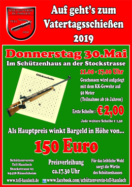 | Vatertagsschießen | Do. 21. Mai | 11-17 Uhr |